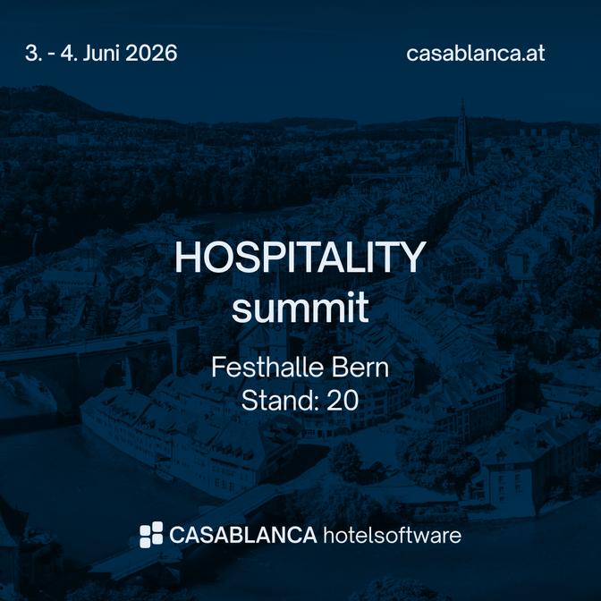 Triff uns am 3. und 4. Juni in der Festhalle Bern! Erlebe unsere Hotelsoftware live vor Ort und verpasse nicht die spannende Best-Practice-Session mit unserem CRO Philipp Hahnl zum Thema KI-Agents & 24/7-Gastfreundschaft.